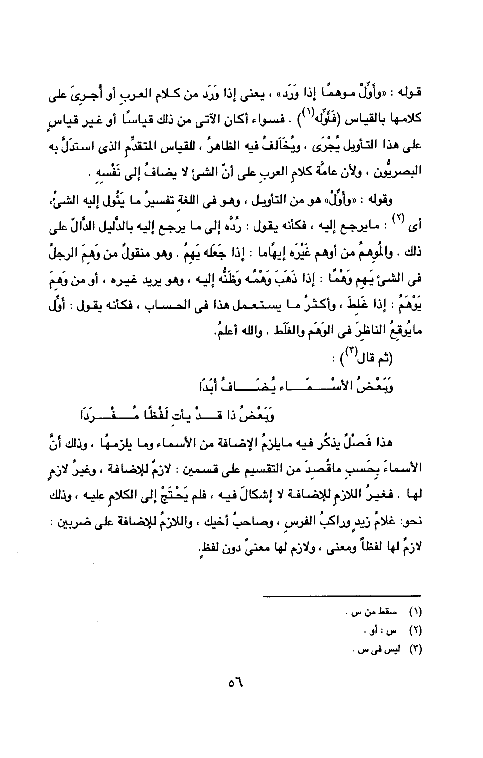 وقوله: ((وأَوَّلْ)) هو من التأويل، وهو في اللغةِ تفسيرُ ما يَئُول إليه الشيءُ، أي (2): ما يرجع إليه، فكأنه يقول: رُدَّه إلى ما يرجع إليه بالدَّليل الدَّال على ذلك. والمُوِهمُ من أوهم غَيْرَه إيهاماً: إذا جَعَله يَهِمُ. وهو منقولٌ من وَهِمَ الرحلُ في الشيء يَهِم وَهْماً: إذا ذَهَبَ وَهْمُه وَظَنُّه إليه، وهو يريد غيره، أو من وَهِمَ يِوْهَمُ: إذا غَلِطَ، وأكثرُ ما يستعمل هذا في الحساب، فكأنه يقول: أَوِّل ما يُوقِعُ الناظِرَ في الوَهَم والغَلَط. والله أعلم.
