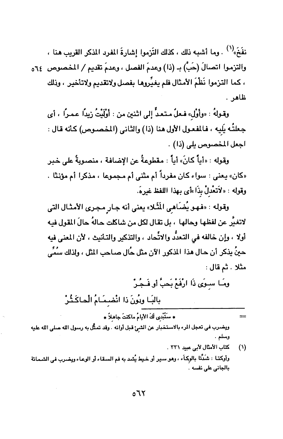 نفَخَ)) (1). وما أشبه ذلك، كذلك التَزموا إشارةَ المفرد المذكر القريب هنا، والتزموا اتصالَ (حَبَّ) ب (ذا) وعدمَ الفصل، وعدم تقديم/ المخصوص، كما التزموا نَظْمَ الأمثال فلم يغيِّروها ... 564 بفصل ولا تقديم ولا تأخير، وذلك ظاهر.