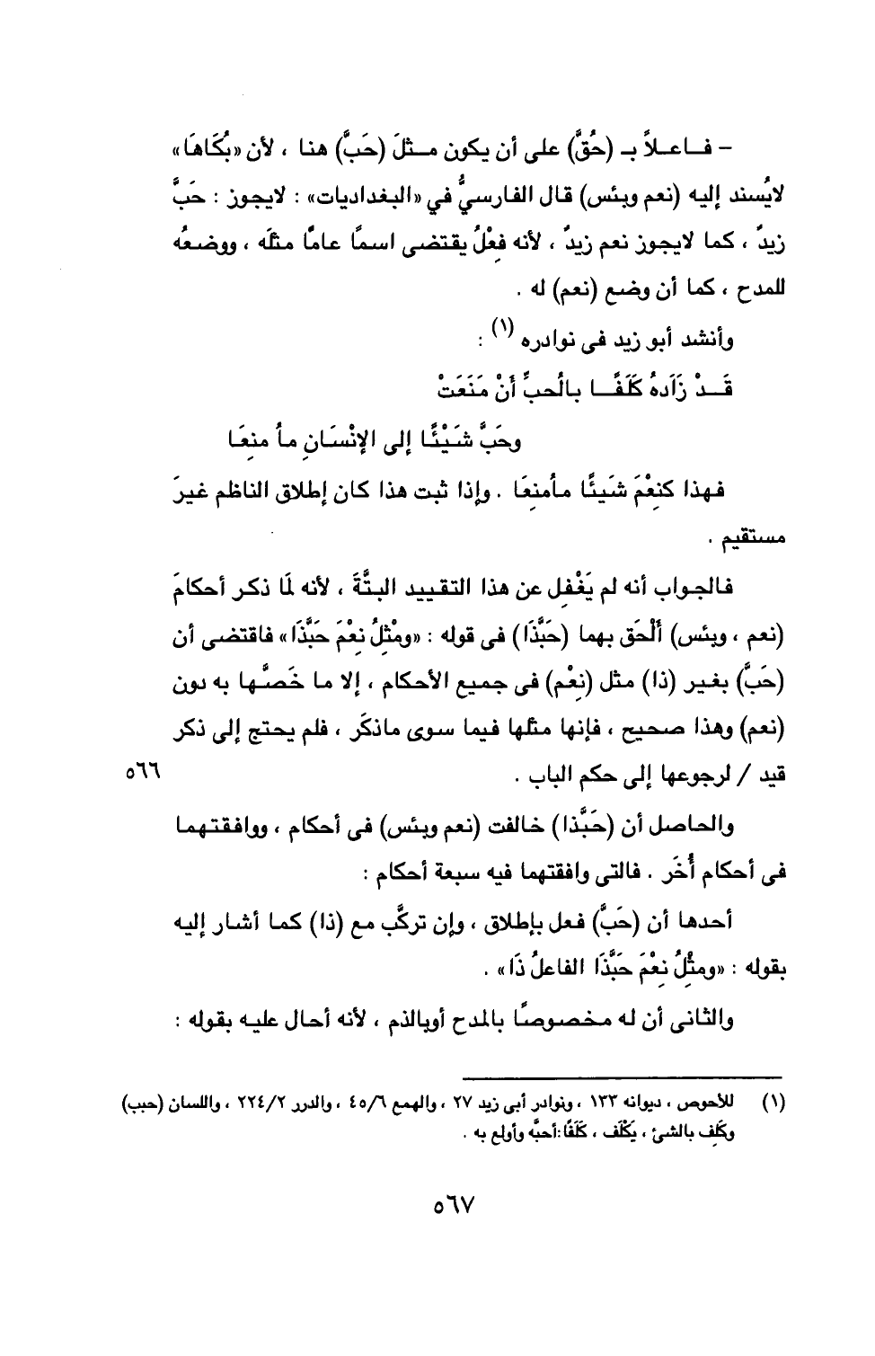 (1) للأحوص، ديوانه 133، ونوادر أبي زيد 27، والهمع 6/ 45، والدرر 2/ 224، واللسان (حبب) وكَلِف بالشيء، يَكْلَف، كَلَفاً: أحبَّه وأولع به.
