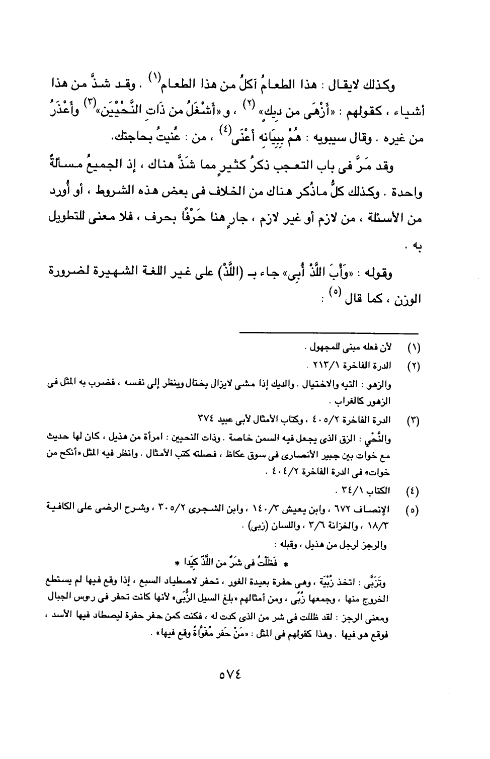 (5) الإنصاف 672، وابن يعيش 3/ 140، وابن الشجري 2/ 305، وشرح الرضي على الكافية 3/ 18، والخزانة 6/ 3، واللسان (زبى).