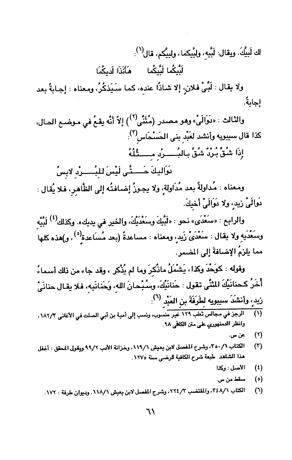 (6) الكتاب 1/ 348، والمقتضب 3/ 224، وشرح المفصل لابن يعيش 1/ 118. وديوان طرفة: 172.