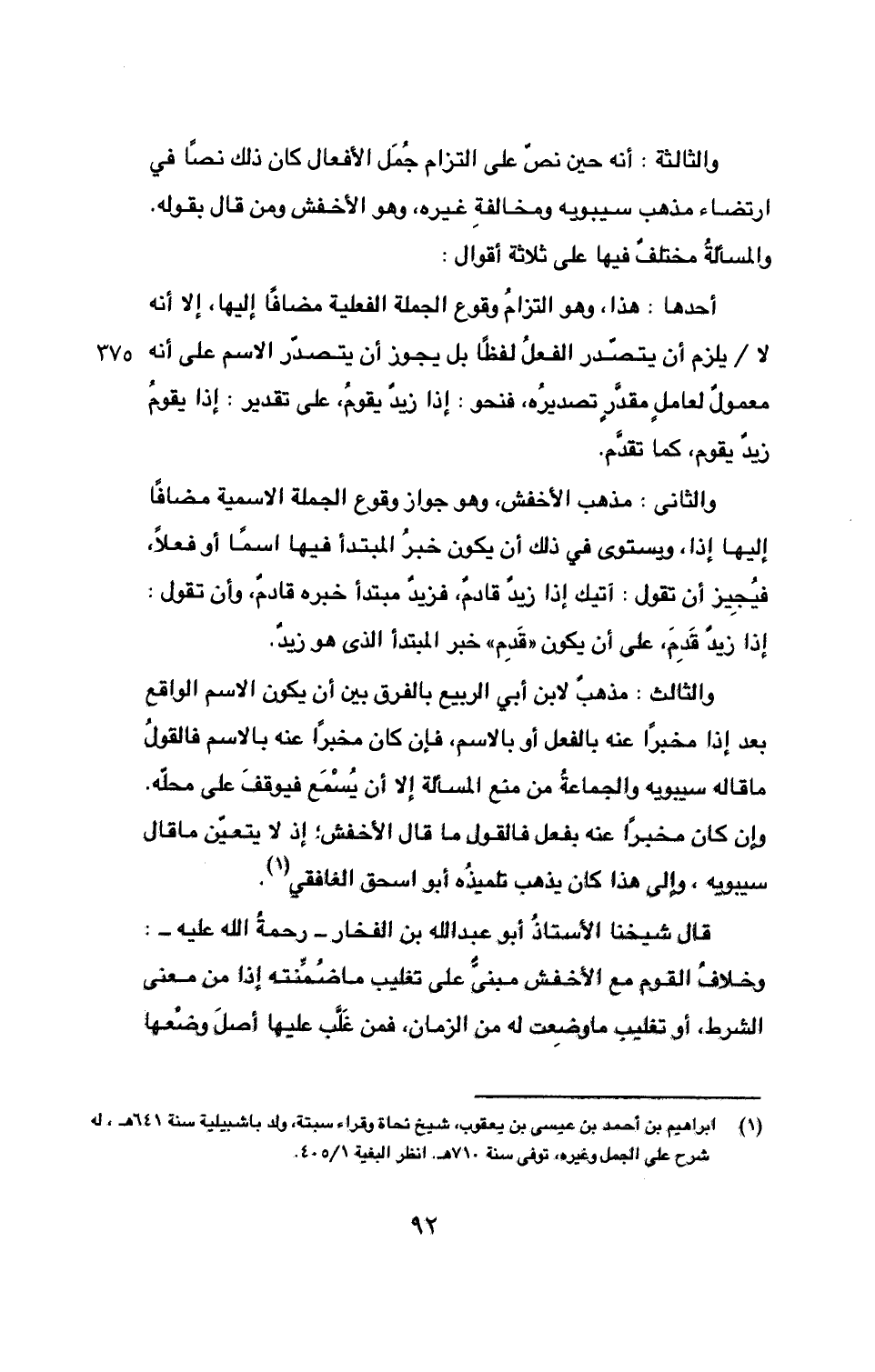 (1) ابراهيم بن أحمد بن عيسى بن يعقوب، شيخ نحاة وقراء سبتة، ولد باشبيلية سنة 641 هـ، له شرح على الجمل وغيره، توفى سنة 710 هـ. انظر البغية 1/ 405.