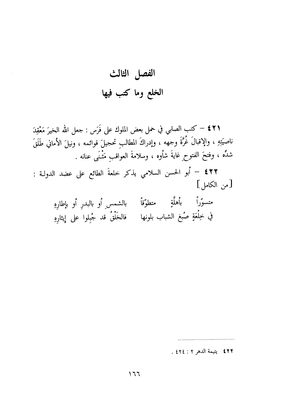 «422» - أبو الحسن السلامي يذكر خلعة الطائع على عضد الدولة: