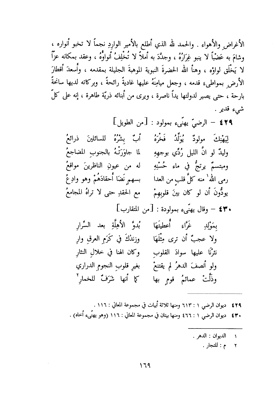 «429» - الرضيّ يهنّىء بمولود: [من الطويل]