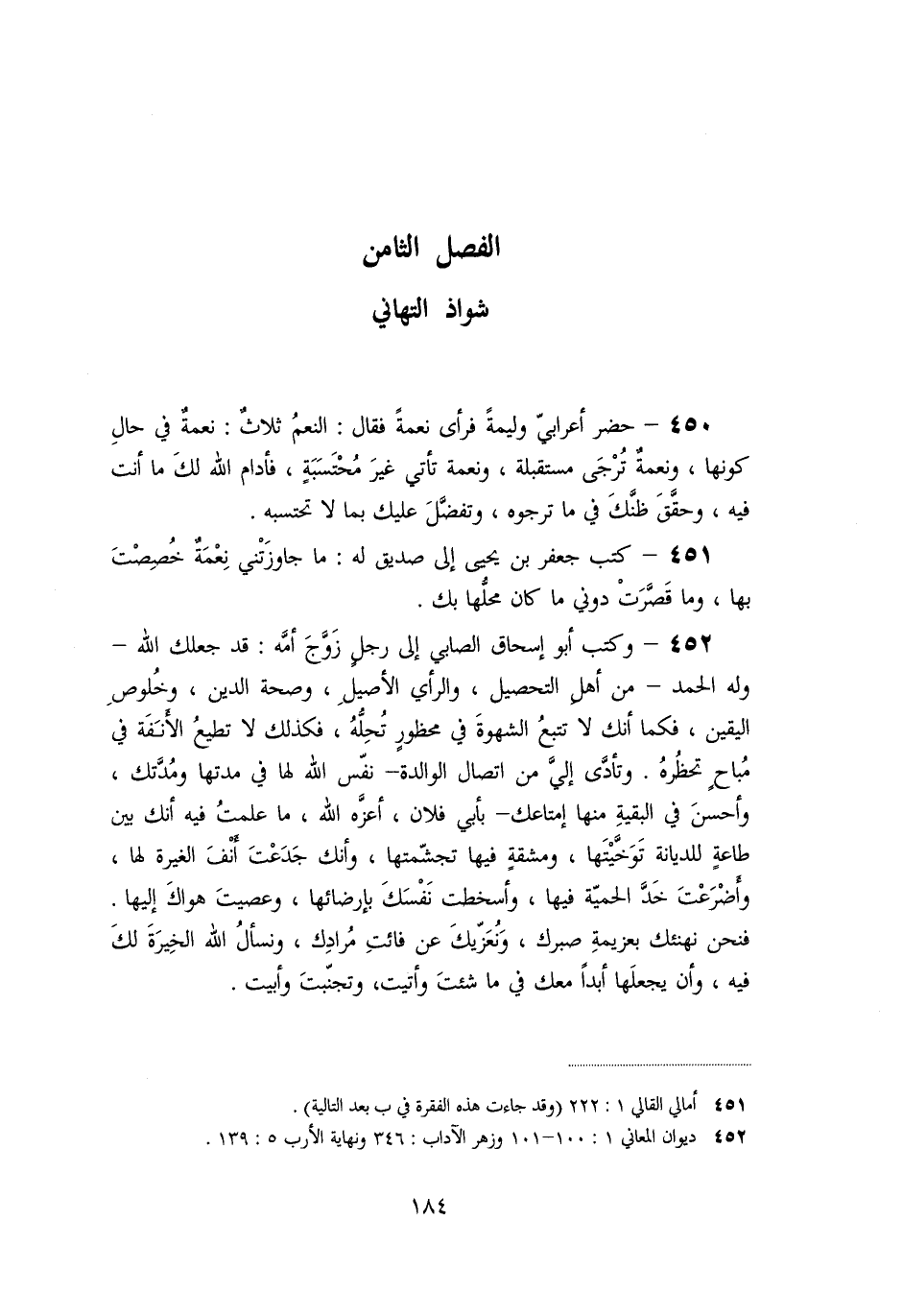 الفصل الثامن شواذ التهاني