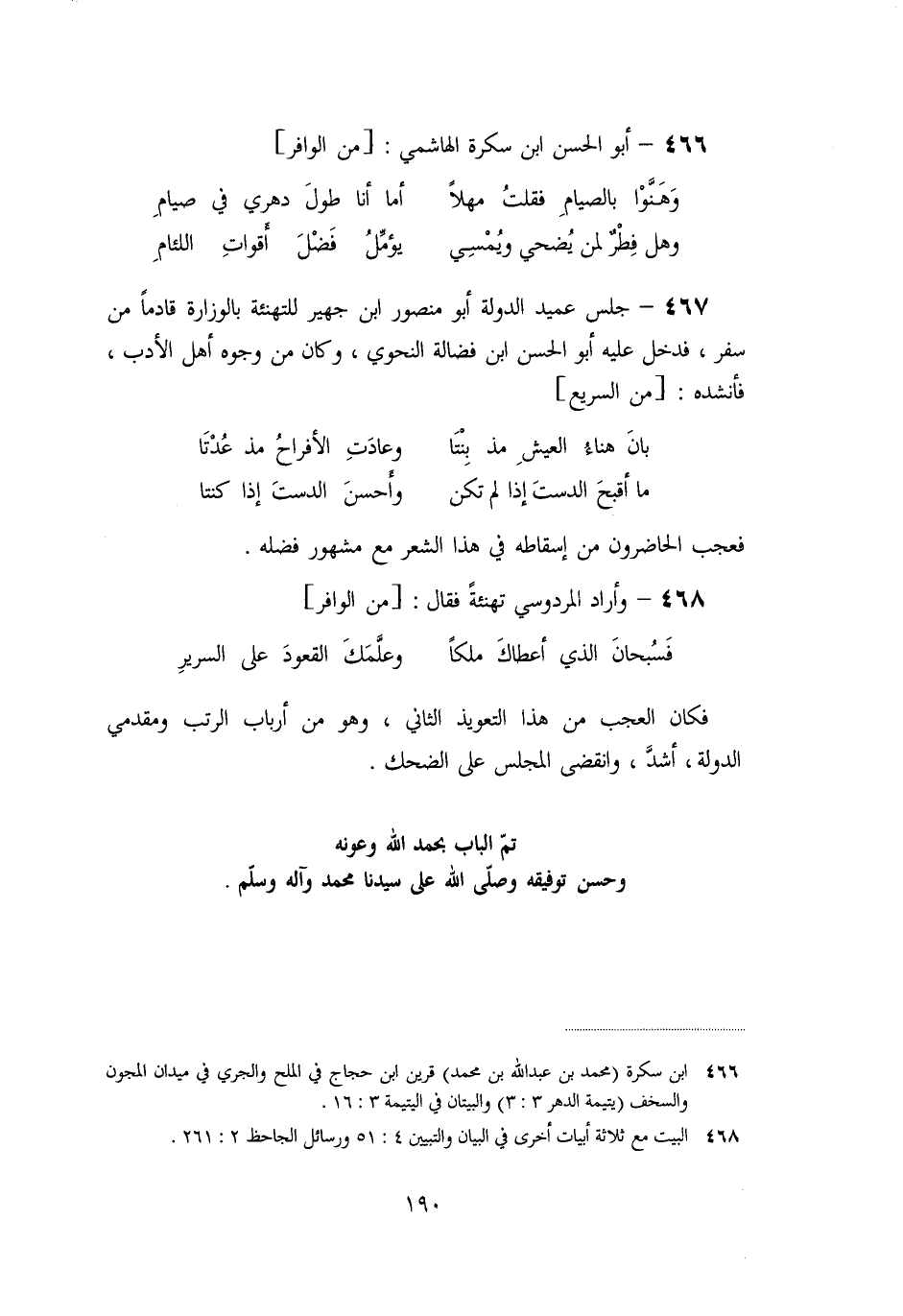 تمّ الباب بحمد الله وعونه وحسن توفيقه وصلّى الله على سيدنا محمد وآله وسلّم.