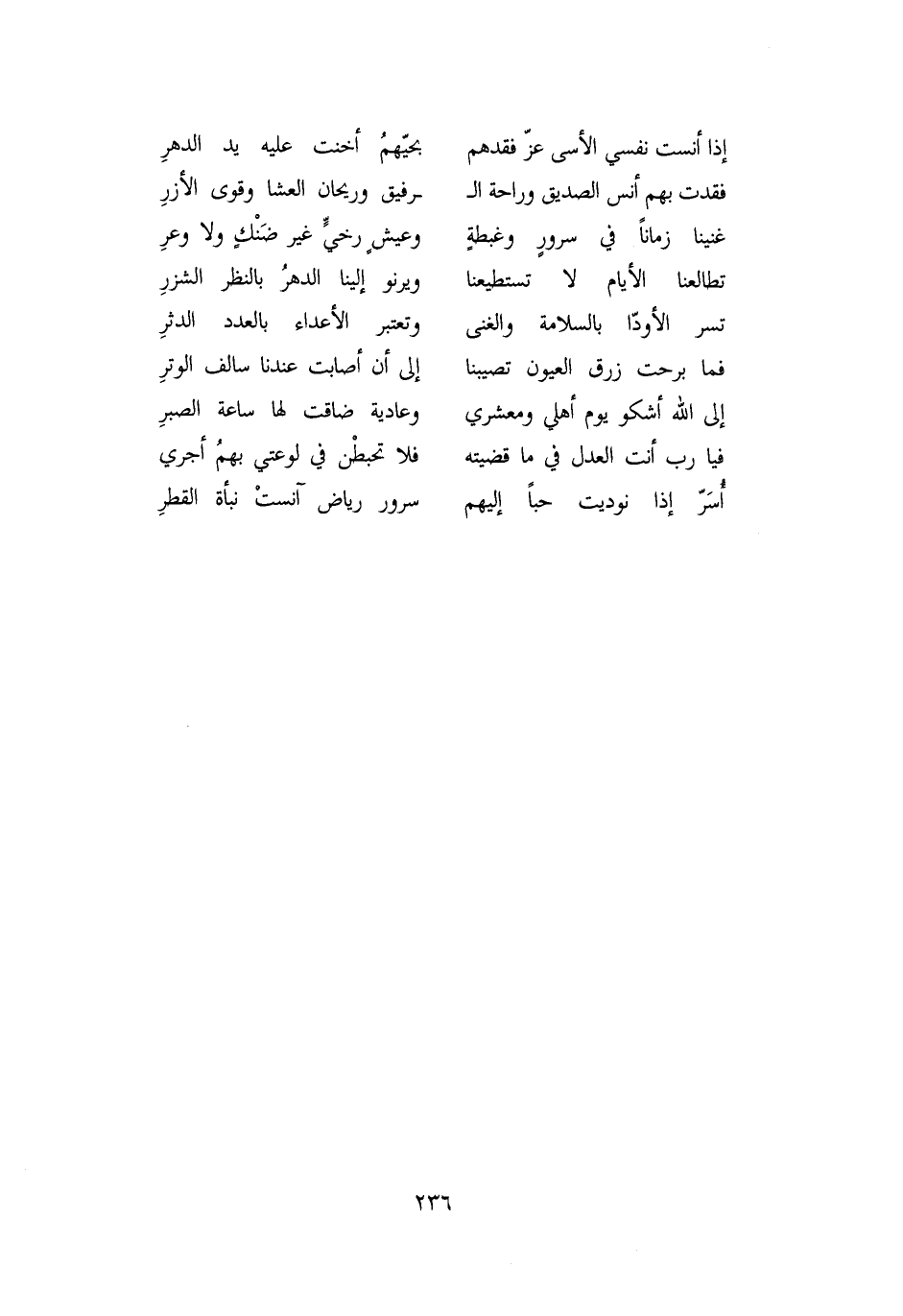 فقدت بهم أنس الصديق وراحة ال ... رفيق وريحان العشا وقوى الأزر