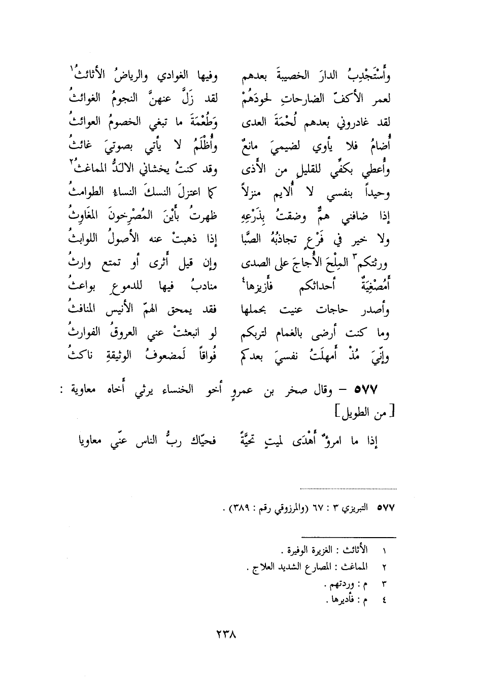 «577» - وقال صخر بن عمرو أخو الخنساء يرثي أخاه معاوية: