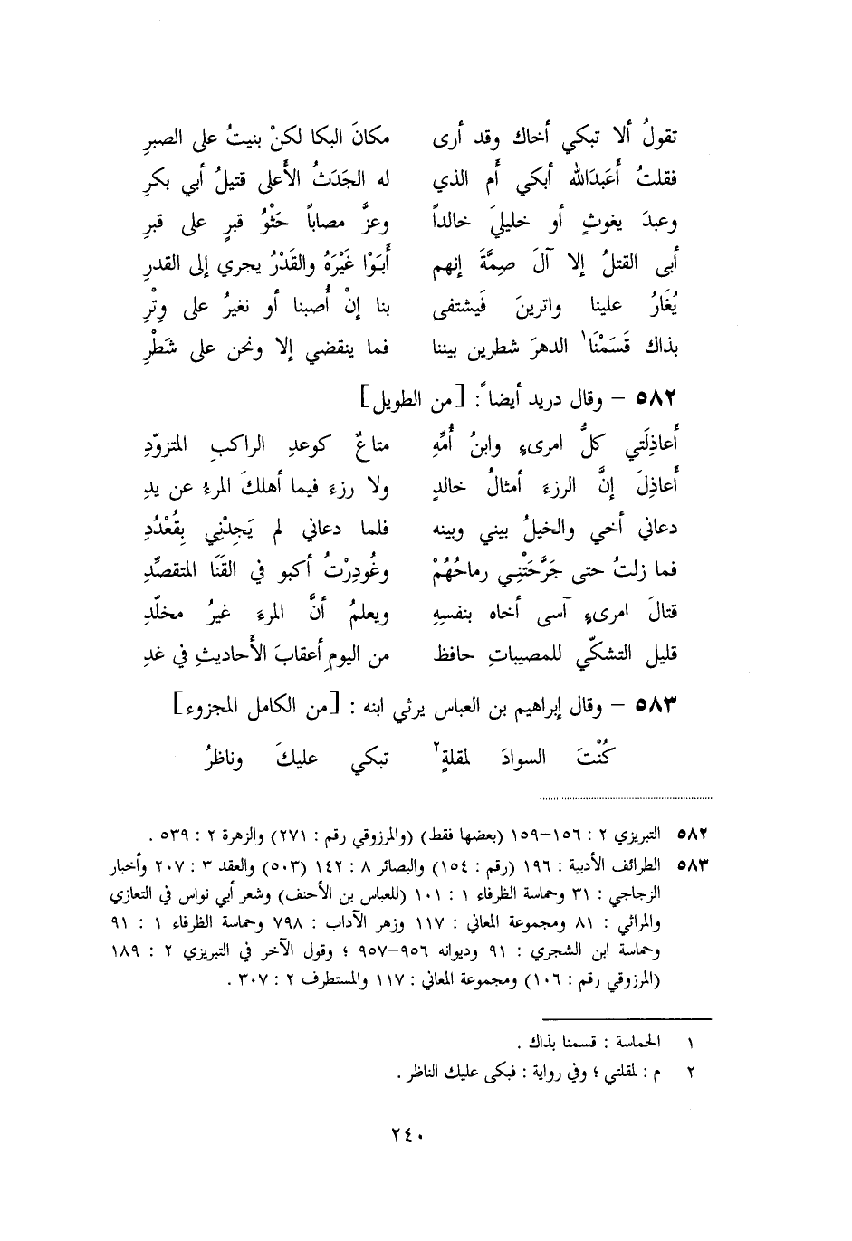 «583» - وقال إبراهيم بن العباس يرثي ابنه: [من الكامل المجزوء]