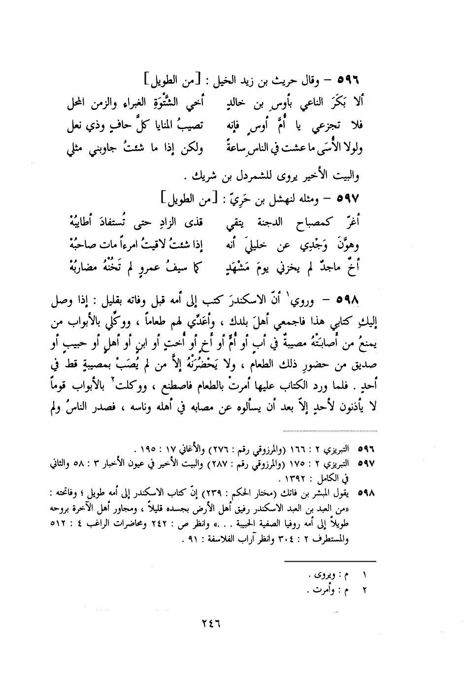 «596» - وقال حريث بن زيد الخيل: [من الطويل]