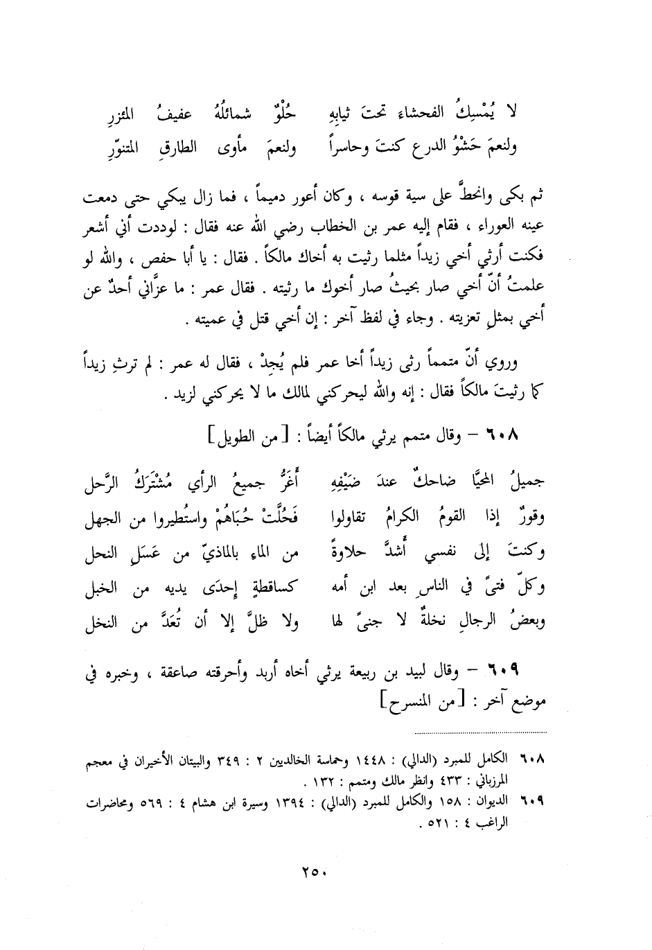 «608» - وقال متمم يرثي مالكا أيضا: [من الطويل]
