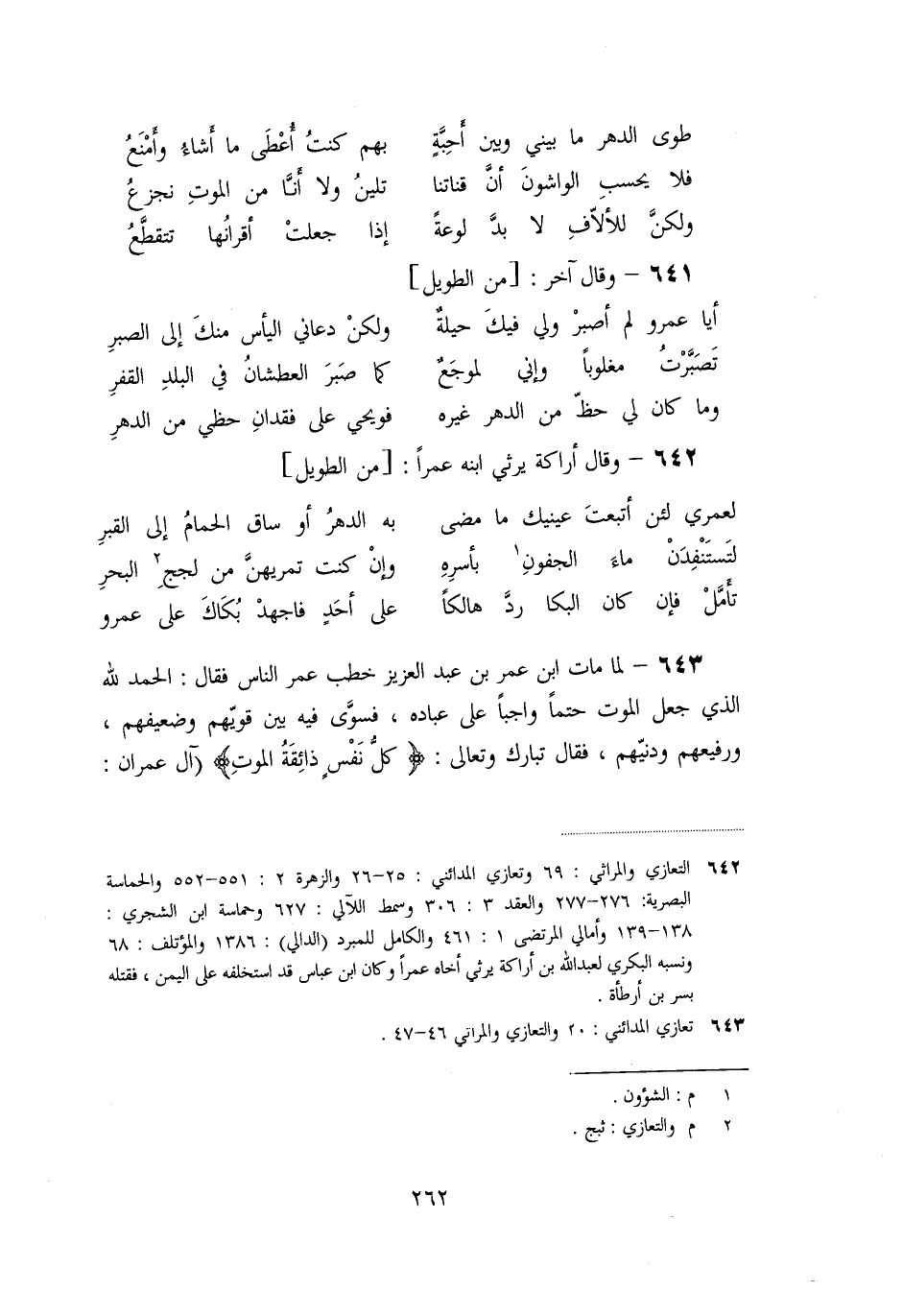 «642» - وقال أراكة يرثي ابنه عمرا: [من الطويل]