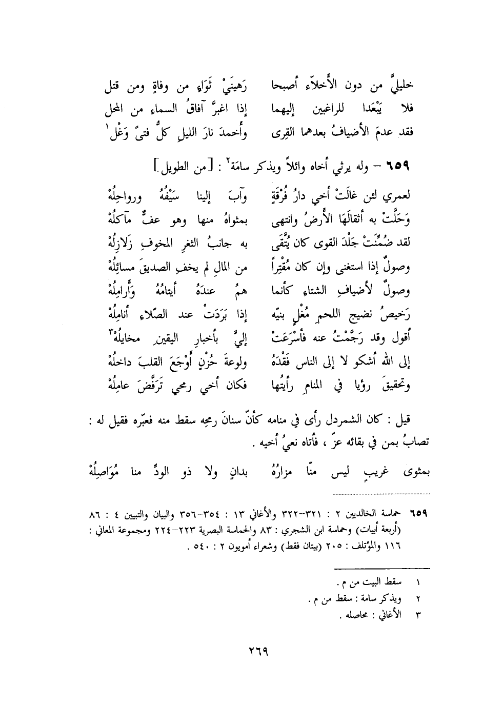 «659» - وله يرثي أخاه وائلا ويذكر سامة [2] : [من الطويل]