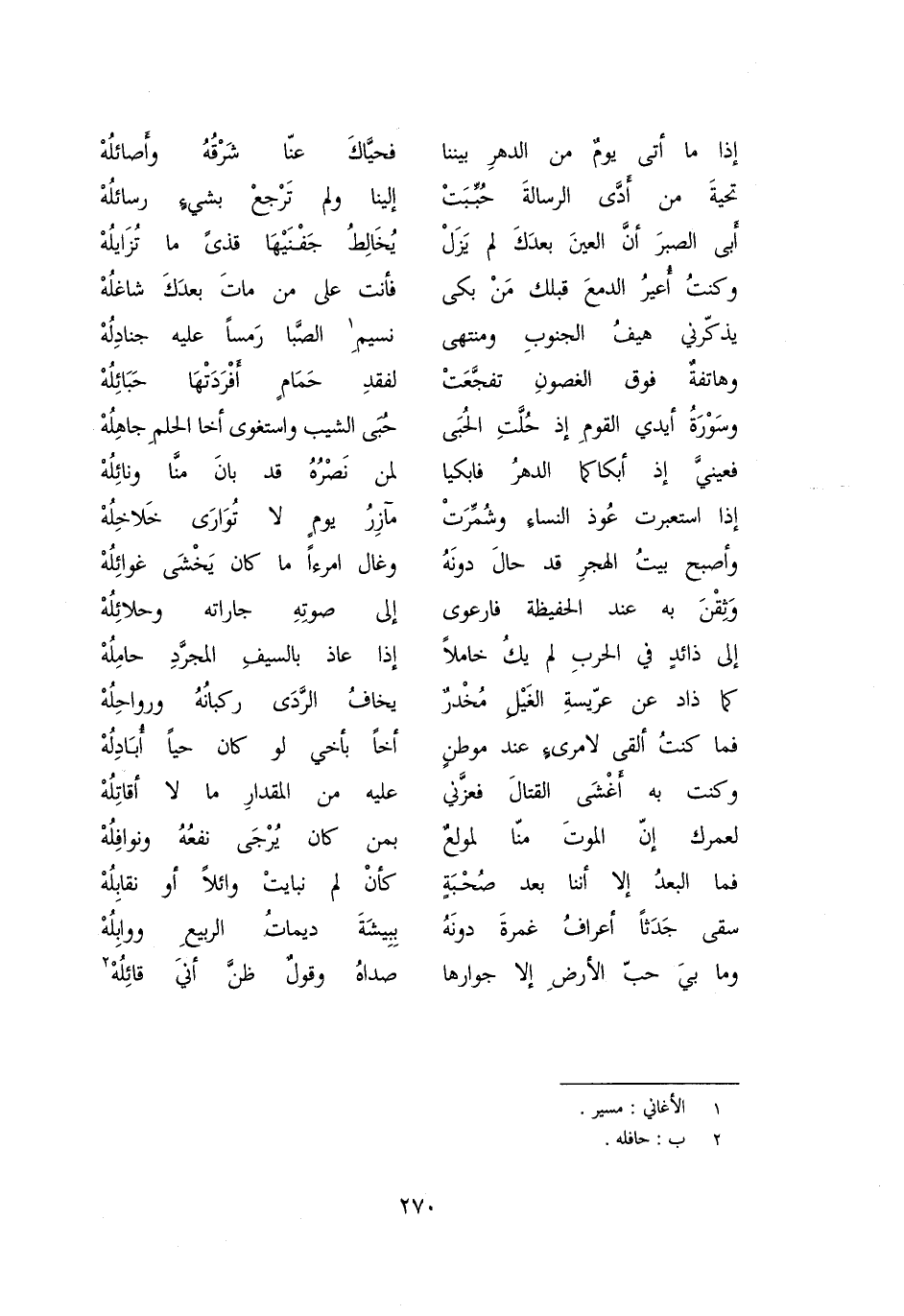 وما بي حبّ الأرض إلا جوارها ... صداه وقول ظنّ أني قائله [2]