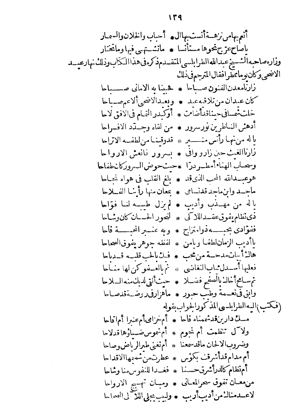 فكتب إليه الطرابلسي المذكور الجواب بقوله