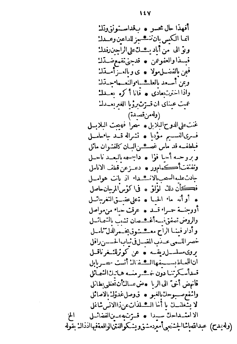 وله يمدح عبد الله باشا الجشنجي أمير دمشق ويشكو الفتن الواقعة فيها إذ ذاك بقوله