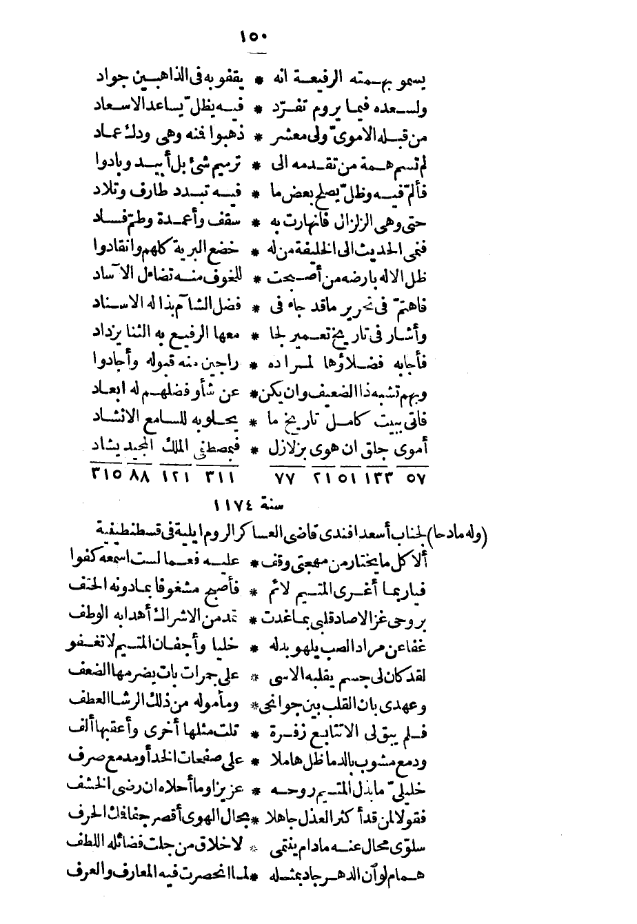 57 133 51 21 77 311 1 - 21 88 315 سنة 1174 وله مادحاً لجناب أسعد أفندي قاضي العساكر الروم إيلية في قسطنطينية