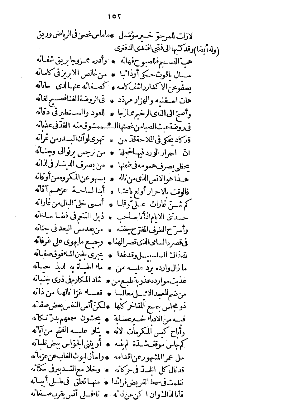 وله أيضاً وقد كتبها إلى فتحي أفندي الدفتري