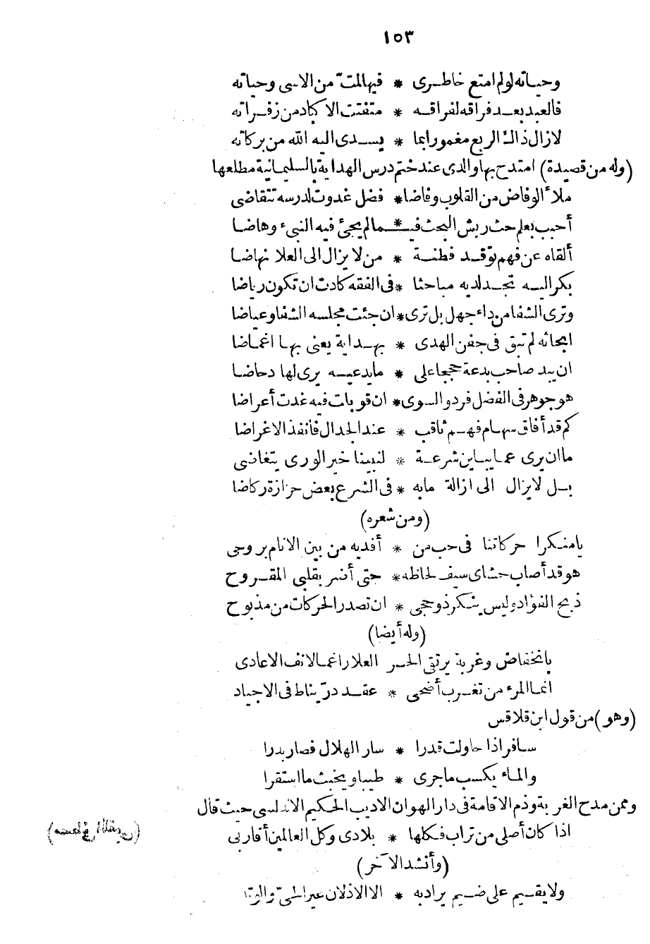 وله من قصيدة امتدح بها والدي عند ختم درس الهداية بالسليمانية مطلعها