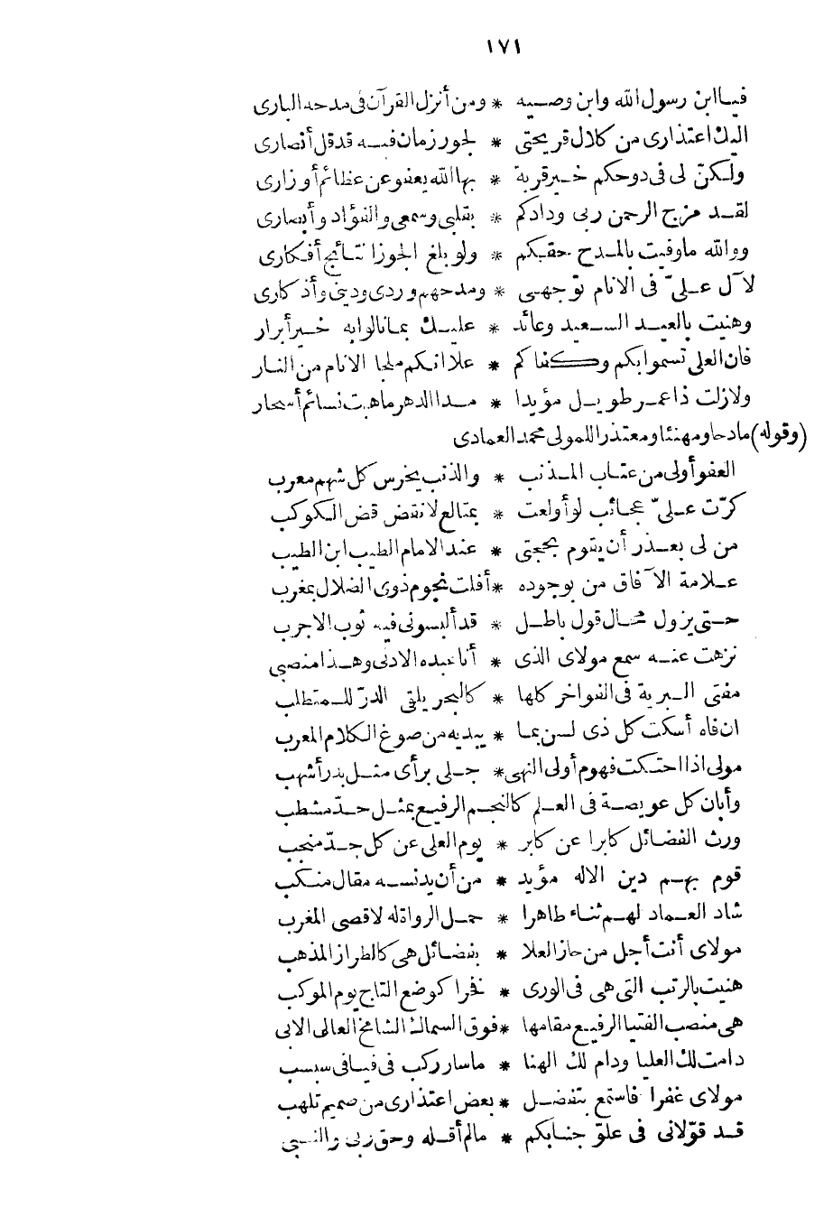 وقوله مادحاً ومهنئاً ومعتذر للمولى محمد العمادي