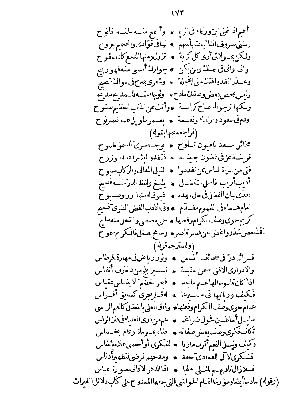 وقوله مادحاً أيضاً ومؤرخاً اتمام الحواشي التي جمعها الممدوح على كتاب دلائل الخيرات