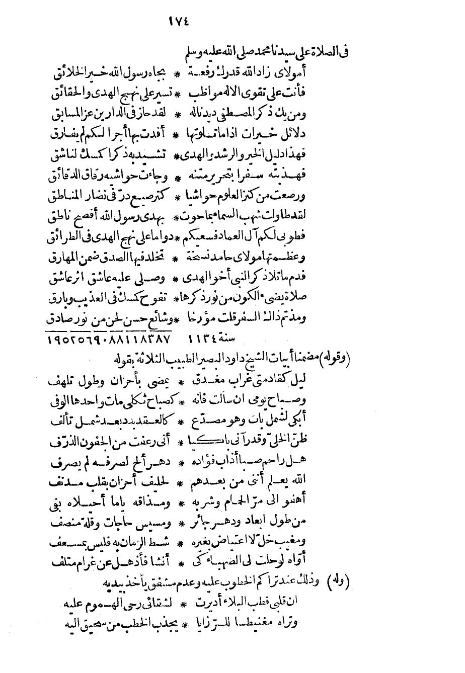 وقوله مضمناً أبيات الشيخ داود البصير الطبيب الثلاثة بقوله
