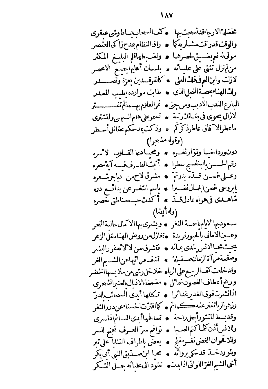 وللورد خدّ قد حكى بروائه ... محياً ابن صدّيق النبي أبي بكر