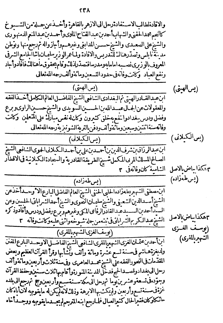 ابن عبد القادر الهيتي ثم البغدادي الشافعي الشيخ الفاضل العالم الكامل أخذ الفقه والمعقولات عن الجمال عبد الله بن الحسين السويدي والشيخ حسين الراوي وبرع وفضل ودرس ببغداد وانتفع به خلق كثيرون وكان له نفس مبارك على المتعلمين وكانت وفاته سنة اثنتين وسبعين ومائة وألف ودفن بالتربة الشونيزية رحمه الله تعالى.