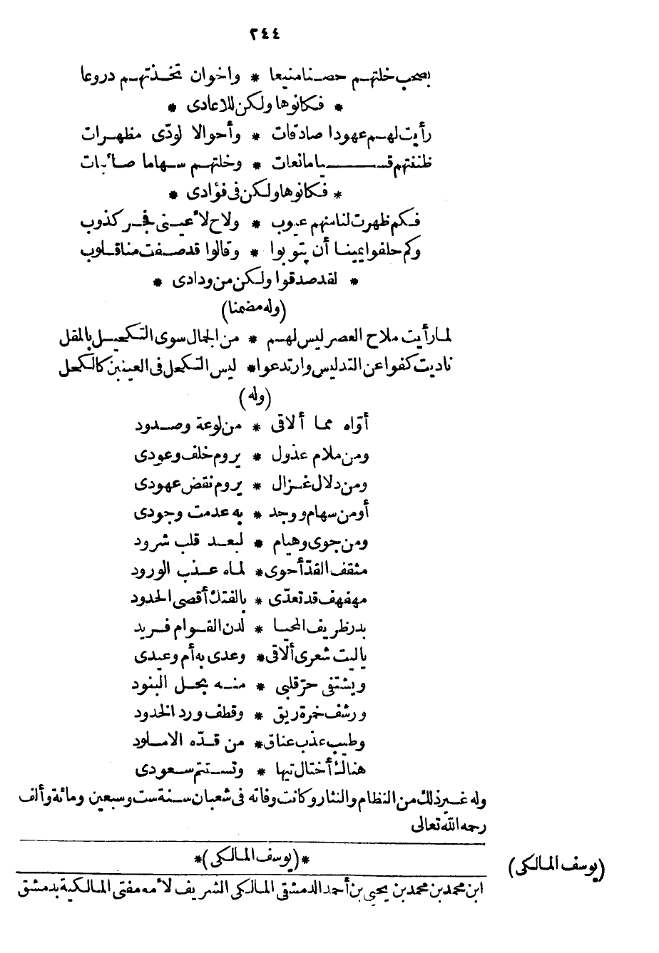 ابن محمد بن محمد بن يحيى بن أحمد الدمشقي المالكي الشريف لأمه مفتي المالكية بدمشق