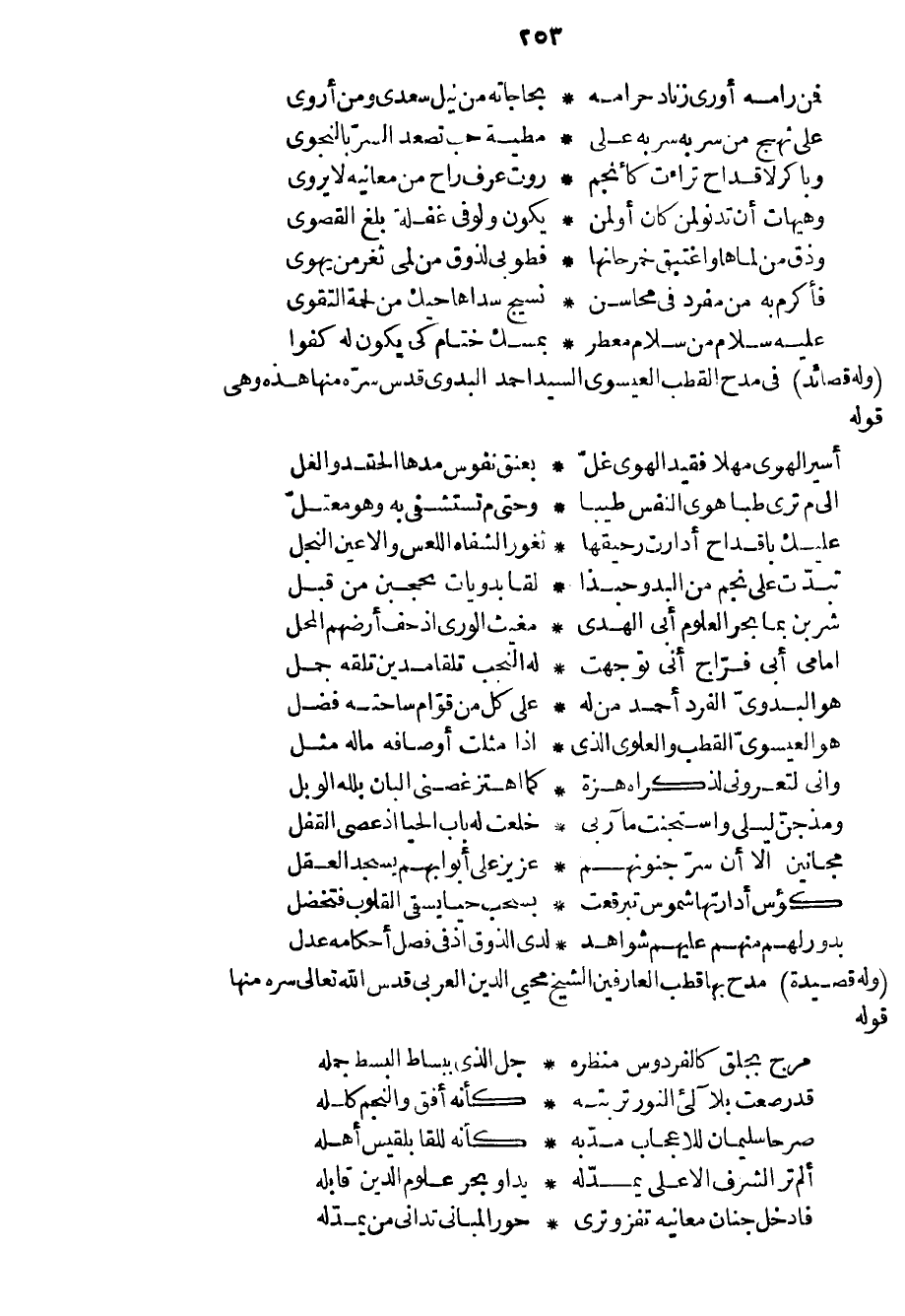 وله قصائد في مدح القطب العيسوي السيد أحمد البدوي قدس سره منها هذه وهي قوله