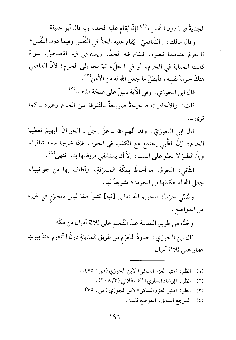 الثّاني: الحرمُ: ما أحاطَ بمكّة المشرّفةِ، وأطاف بها من جوانبها، جعل اللَّه له حكمَها في الحرمة؛ تشريفًا لها.