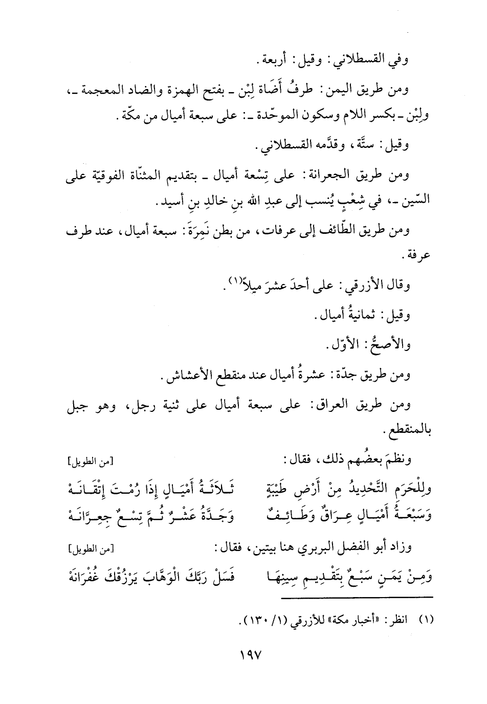 وَسَبْعَةُ أَمْيَالٍ عِرَاقٌ وَطَائِفٌ ... وَجَدَّةُ عَشْر ثُمَّ تِسْعٌ جِعِرَّانَهْ