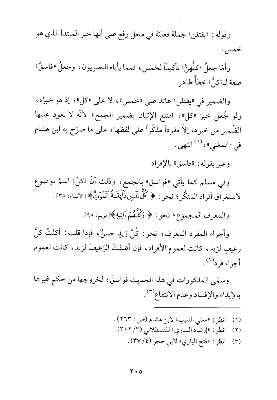 وفي مسلم كما يأتي "فواسق" بالجمع، وذلك أنّ "كلّ" اسمٌ موضوع لاستغراق أفراد المنكَّر؛ نحو: {كُلُّ نَفْسٍ ذَائِقَةُ الْمَوْتِ} [الأنبياء: ٣٥].