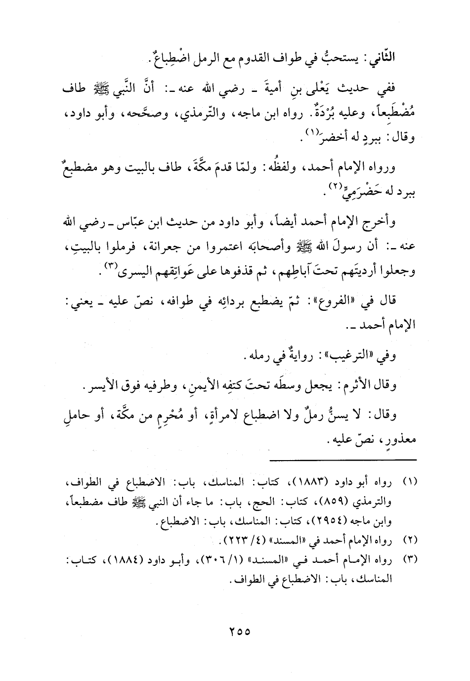 (٣) رواه الإمام أحمد في "المسند" (١/ ٣٠٦)، وأبو داود (١٨٨٤)، كتاب: المناسك، باب: الاضطباع في الطواف.