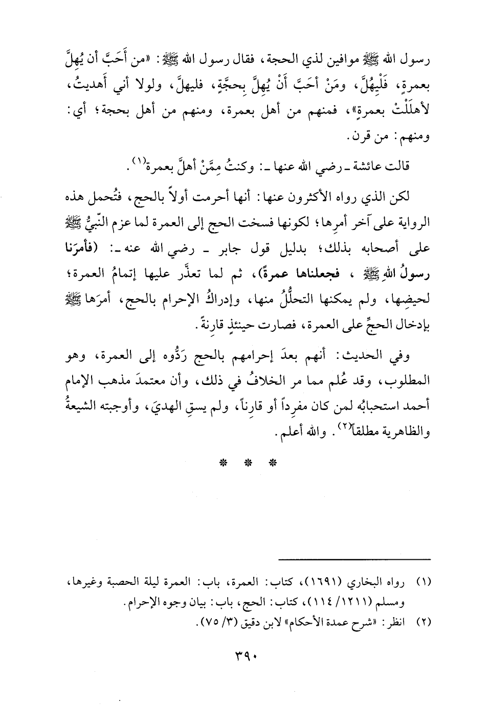 (١) رواه البخاري (١٦٩١)، كتاب: العمرة، باب: العمرة ليلة الحصبة وغيرها، ومسلم (١٢١١/ ١١٤)، كتاب: الحج، باب: بيان وجوه الإحرام.