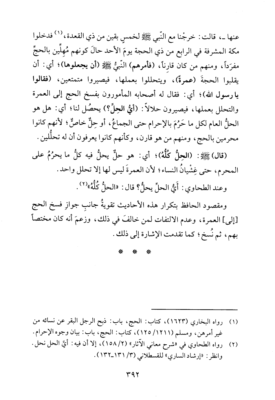 (٢) رواه الطحاوي في "شرح معاني الآثار" (٢/ ١٥٨)، إلا أن فيه: أيَّ الحل نحل. وانظر: "إرشاد الساري" للقسطلاني (٣/ ١٣١ - ١٣٢).
