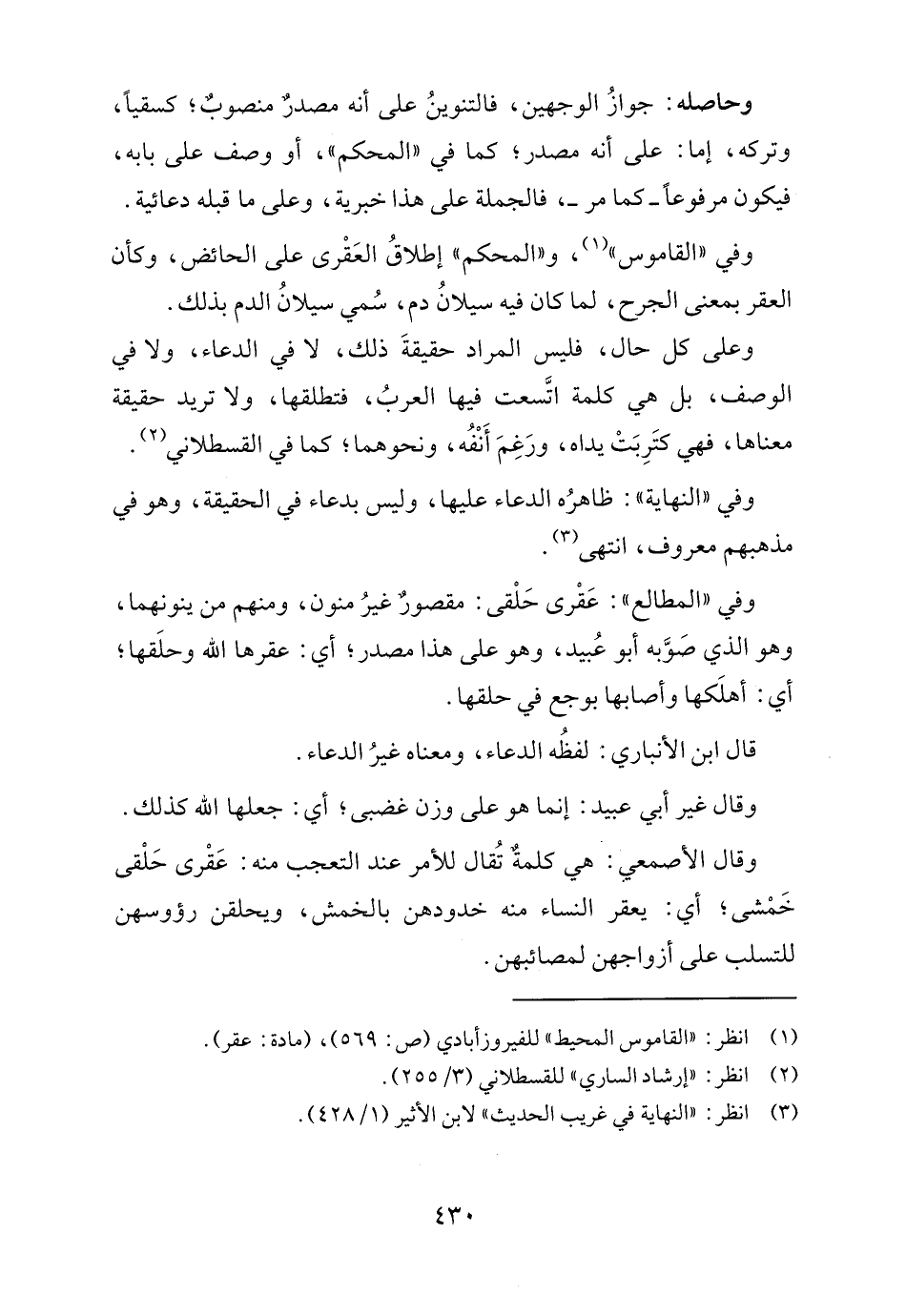 (١) انظر: "القاموس المحيط" للفيروزأبادي (ص: ٥٦٩)، (مادة: عقر).