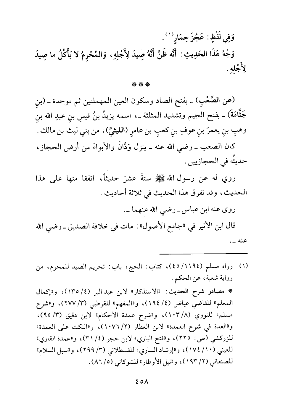 كان الصعب - رضي الله عنه - ينزل وَدَّانَ والأبواءَ من أرض الحجاز، حديثه في الحجازيين.