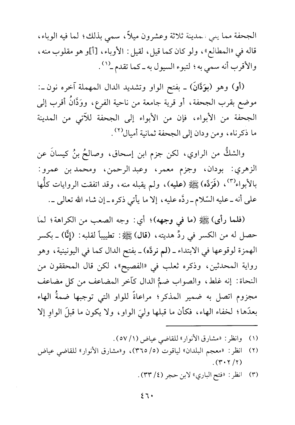 (أو) وهو (بوَدَّانَ) -بفتح الواو وتشديد الدال المهملة آخره نون-: موضع بقرب الجحفة، أو قرية جامعة من ناحية الفرع، ووَدَّانُ أقرب إلى الجحفة من الأبواء، فإن من الأبواء إلى الجحفة للآتي من المدينة ما ذكرناه، ومن ودان إلى الجحفة ثمانية أميال (٢).