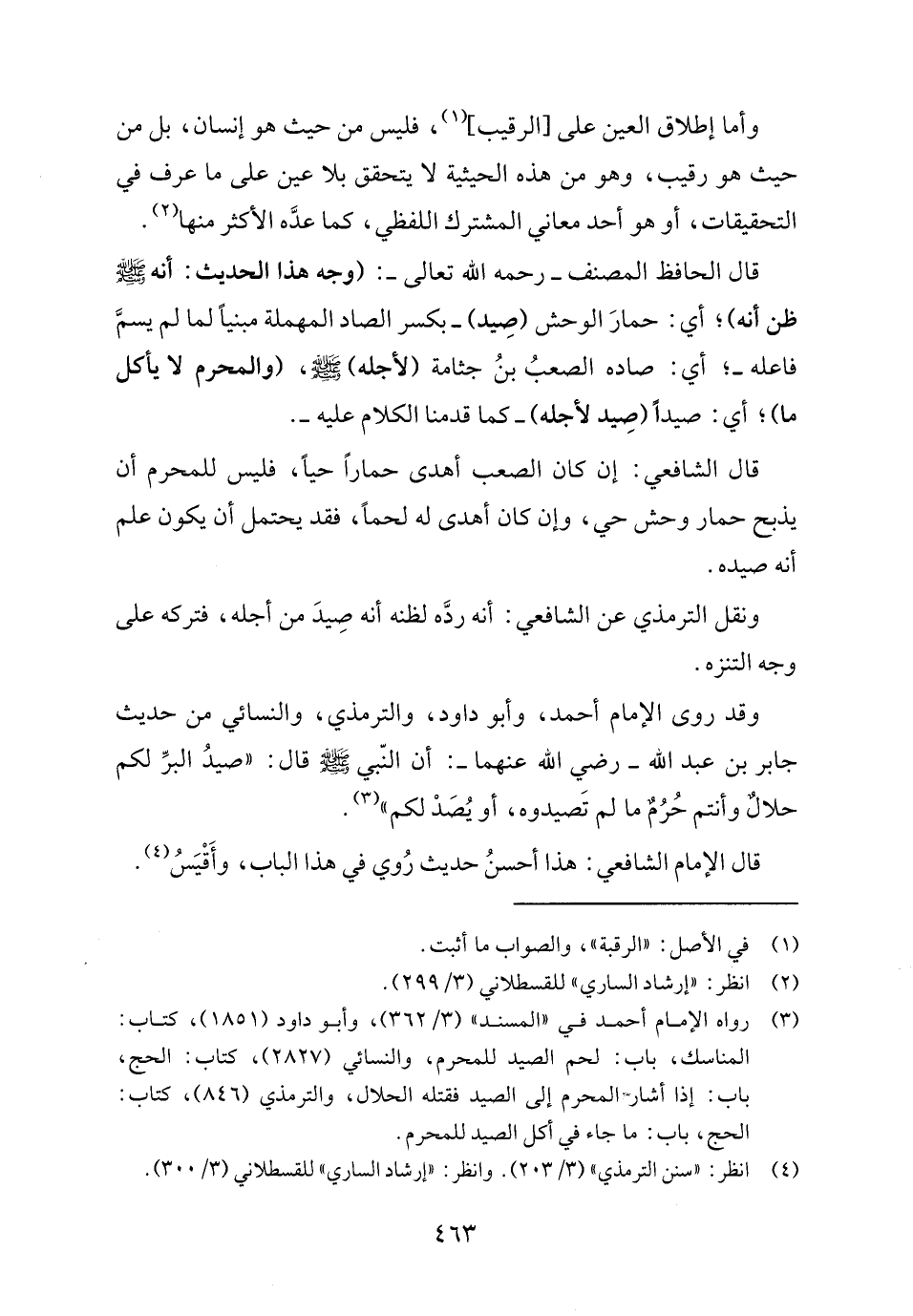 (٤) انظر: "سنن الترمذي" (٣/ ٢٠٣). وانظر: "إرشاد الساري" للقسطلاني (٣/ ٣٠٠).