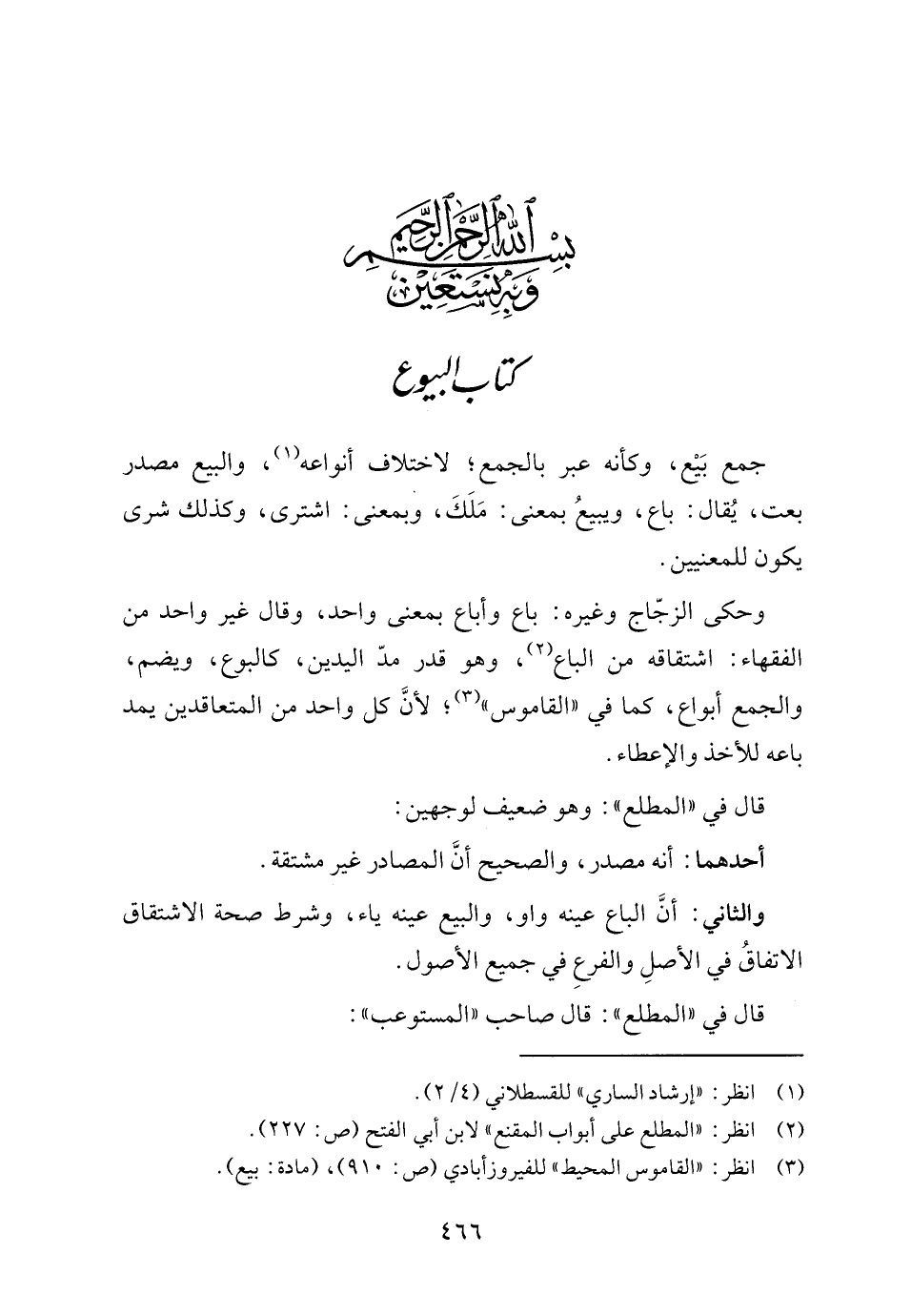 (٣) انظر: "القاموس المحيط" للفيروزأبادي (ص: ٩١٠)، (مادة: بيع).