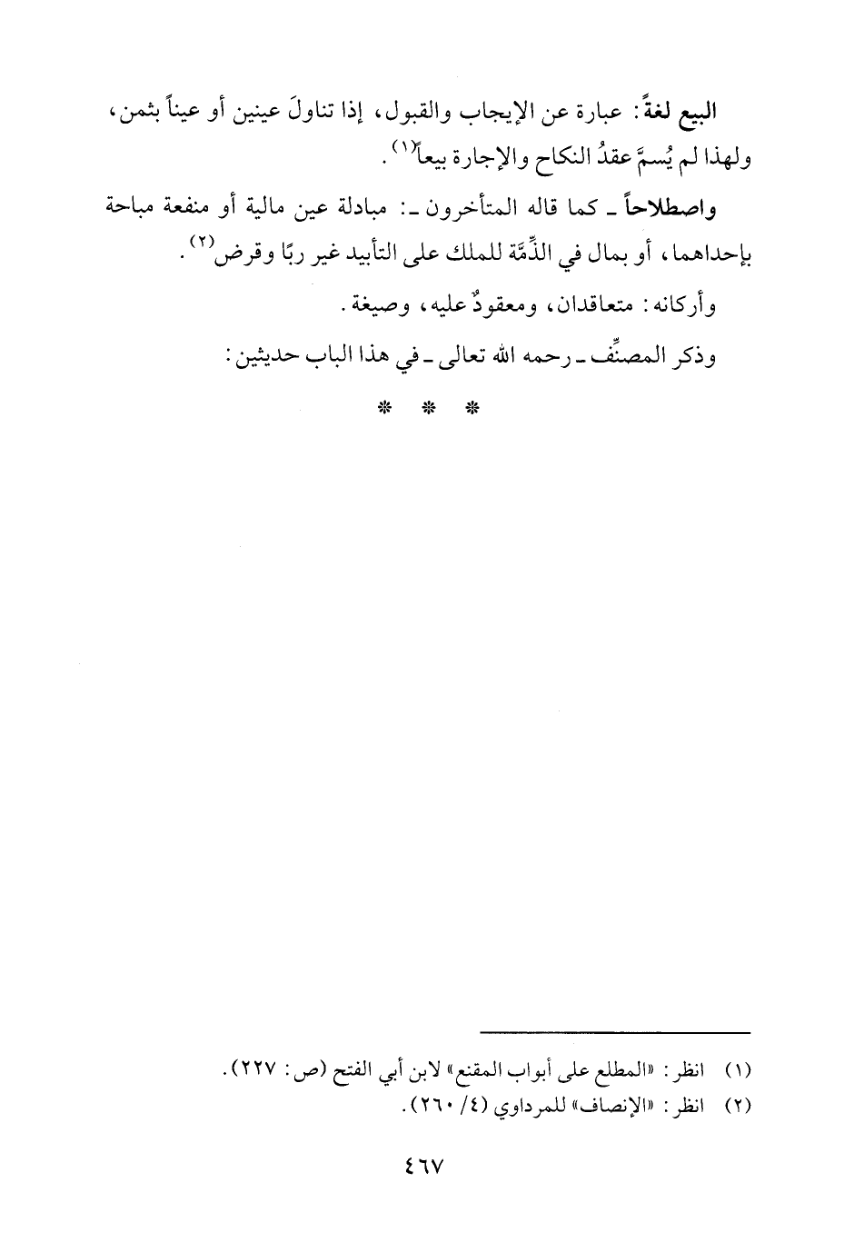 (١) انظر: "المطلع على أبواب المقنع" لابن أبي الفتح (ص: ٢٢٧).