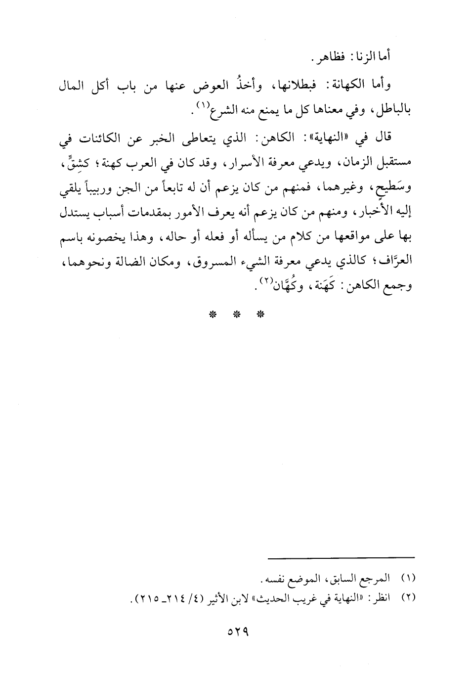 قال في "النهاية": الكاهن: الذي يتعاطى الخبر عن الكائنات في مستقبل الزمان، ويدعي معرفة الأسرار، وقد كان في العرب كهنة، كشِقٍّ، وسَطيحٍ، وغيرهما، فمنهم من كان يزعم أن له تابعًا من الجن وربيبًا يلقي إليه الأخبار، ومنهم من كان يزعم أنه يعرف الأمور بمقدمات أسباب يستدل كما على مواقعها من كلام من يسأله أو فعله أو حاله، وهذا يخصونه باسم العرَّاف، كالذي يدعي معرفة الشيء المسروق، ومكان الضالة ونحوهما، وجمع الكاهن: كَهنة، وكُهَّان (٢).