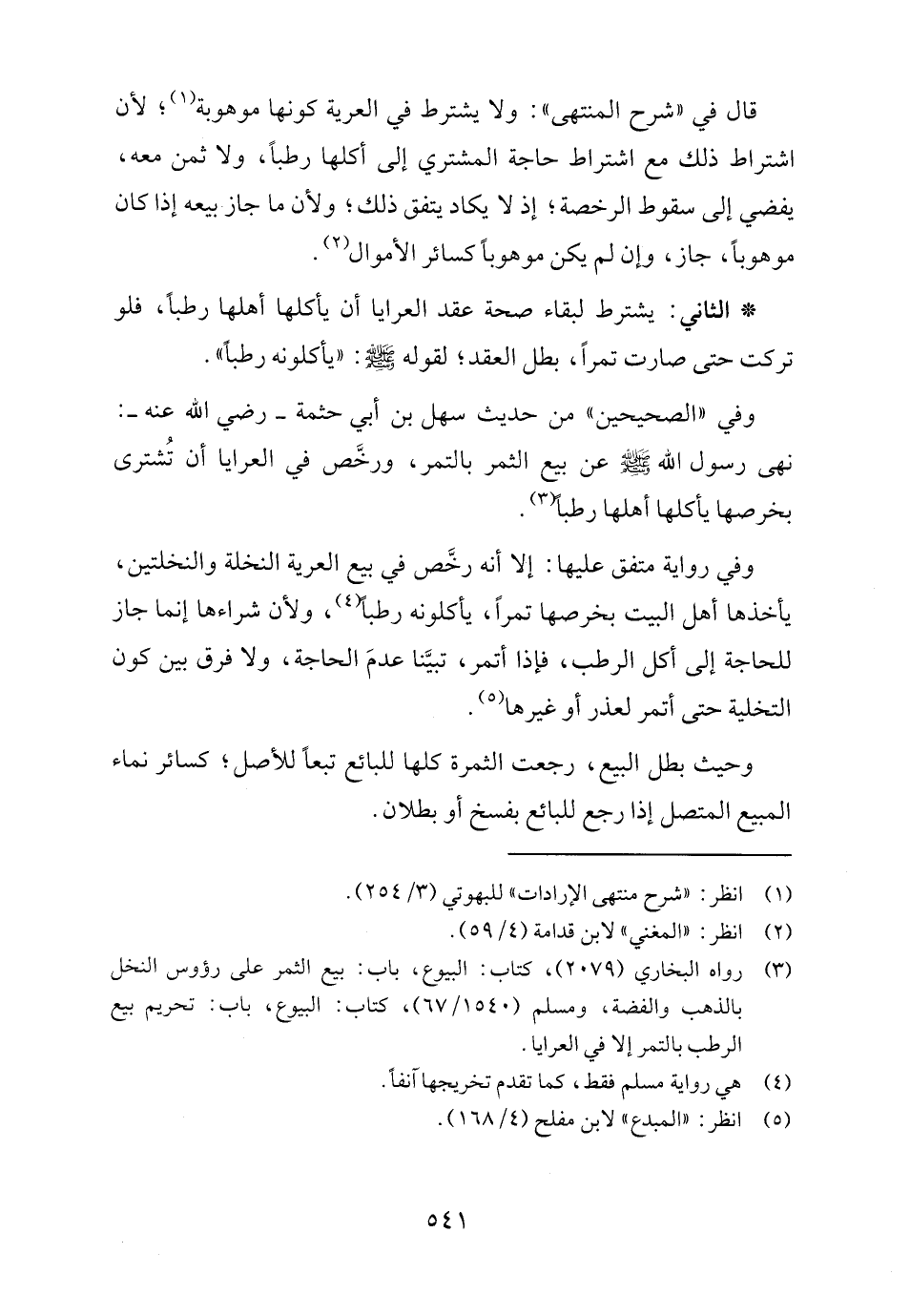 قال في "شرح المنتهى": ولا يشترط في العريه كونها موهوبة (١)؛ لأن اشتراط ذلك مع اشتراط حاجة المشتري إلى أكلها رطبًا، ولا ثمن معه، يفضي إلى سقوط الرخصة، إذ لا يكاد يتفق ذلك؛ ولأن ما جاز بيعه إذا كان موهوبًا، جاز، كان لم يكن موهوبًا كسائر الأموال (٢).