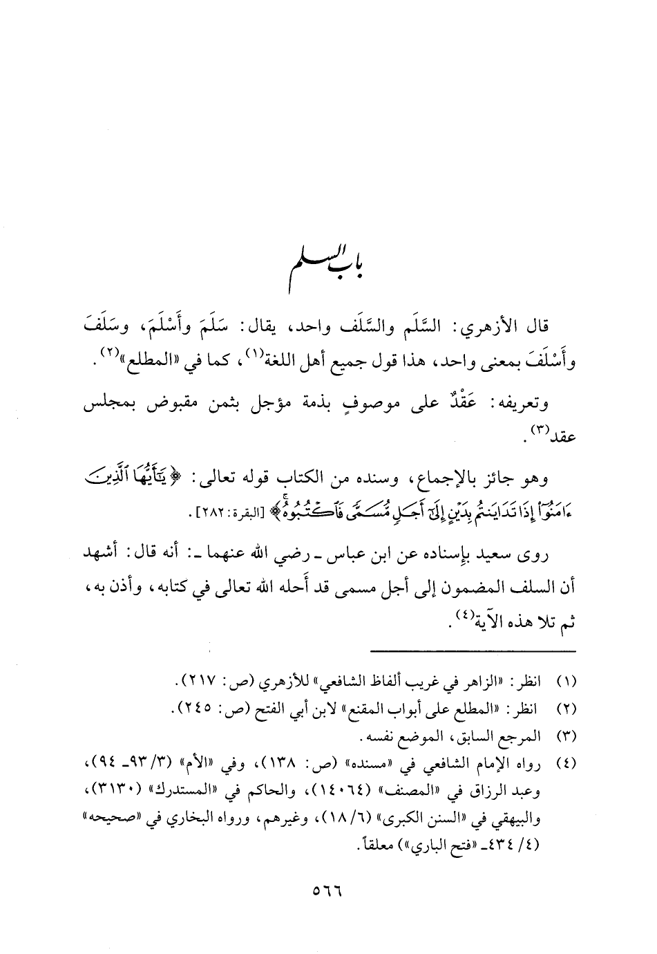 قال الأزهري: السَّلَم والسَّلَف واحد، يقال: سَلَمَ وأَسْلَمَ، وسَلَفَ وأَسْلَفَ بمعنى واحد، هذا قول جميع أهل اللغة (١)، كما في "المطلع" (٢).