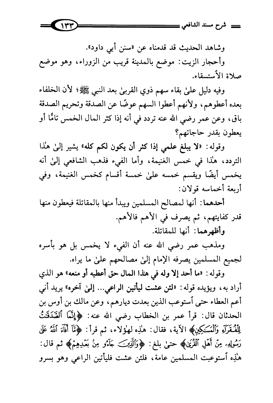 وقوله: "لا يبلغ علمي إذا كثر أن يكون لكم كله" يشير إلى هذا التردد، هذا في خمس الغنيمة، وأما الفيء فذهب الشافعي إلى أنه يخمس أيضًا ويقسم خمسه على خمسة أقسام كخمس الغنيمة، وفي أربعة أخماسه قولان: