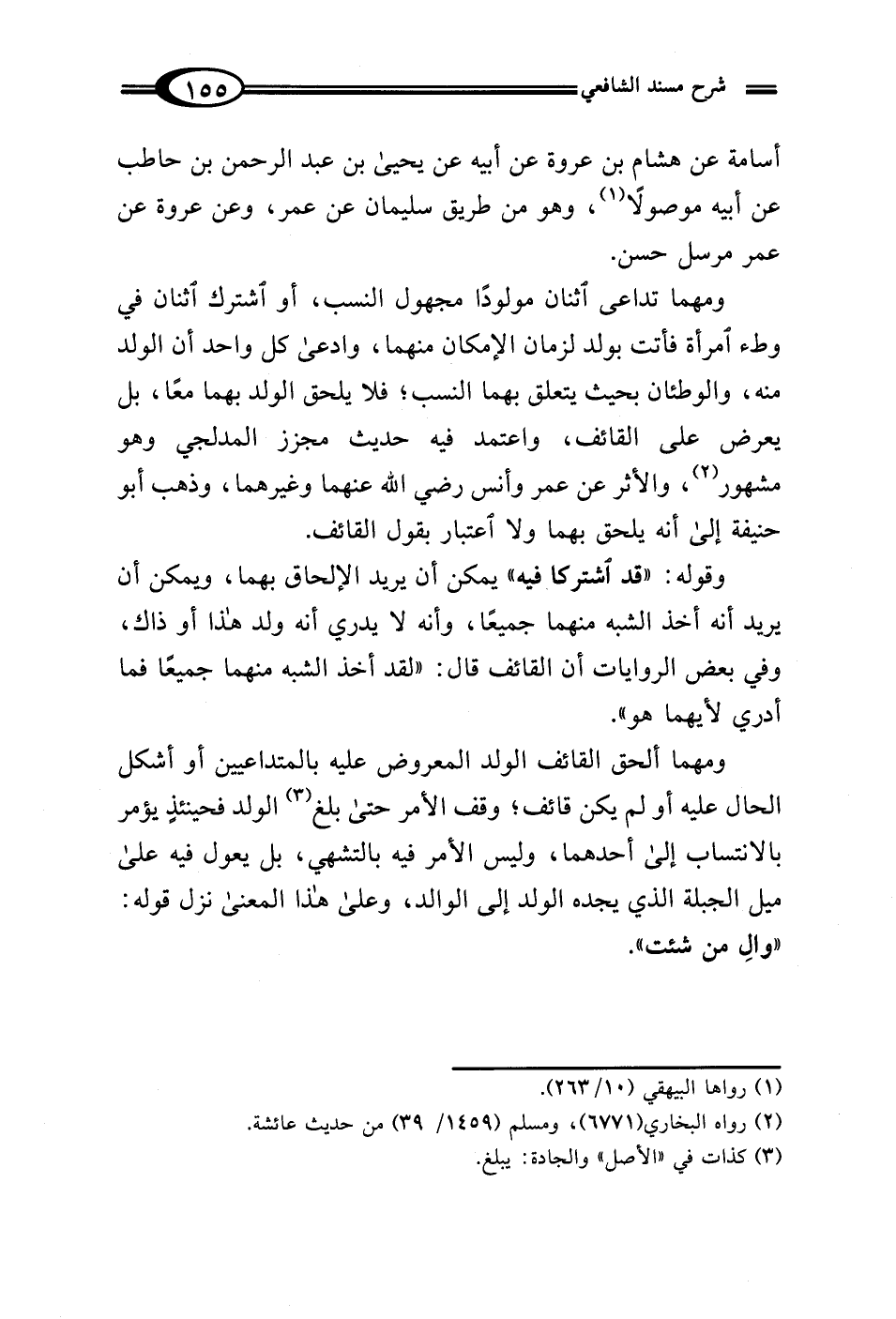 وقوله: "قد اشتركا فيه" يمكن أن يريد الإلحاق بهما، ويمكن أن يريد أنه أخذ الشبه منهما جميعًا، وأنه لا يدري أنه ولد هذا أو ذاك، وفي بعض الروايات أن القائف قال: "لقد أخذ الشبه منهما جميعًا فما أدري لأيهما هو".