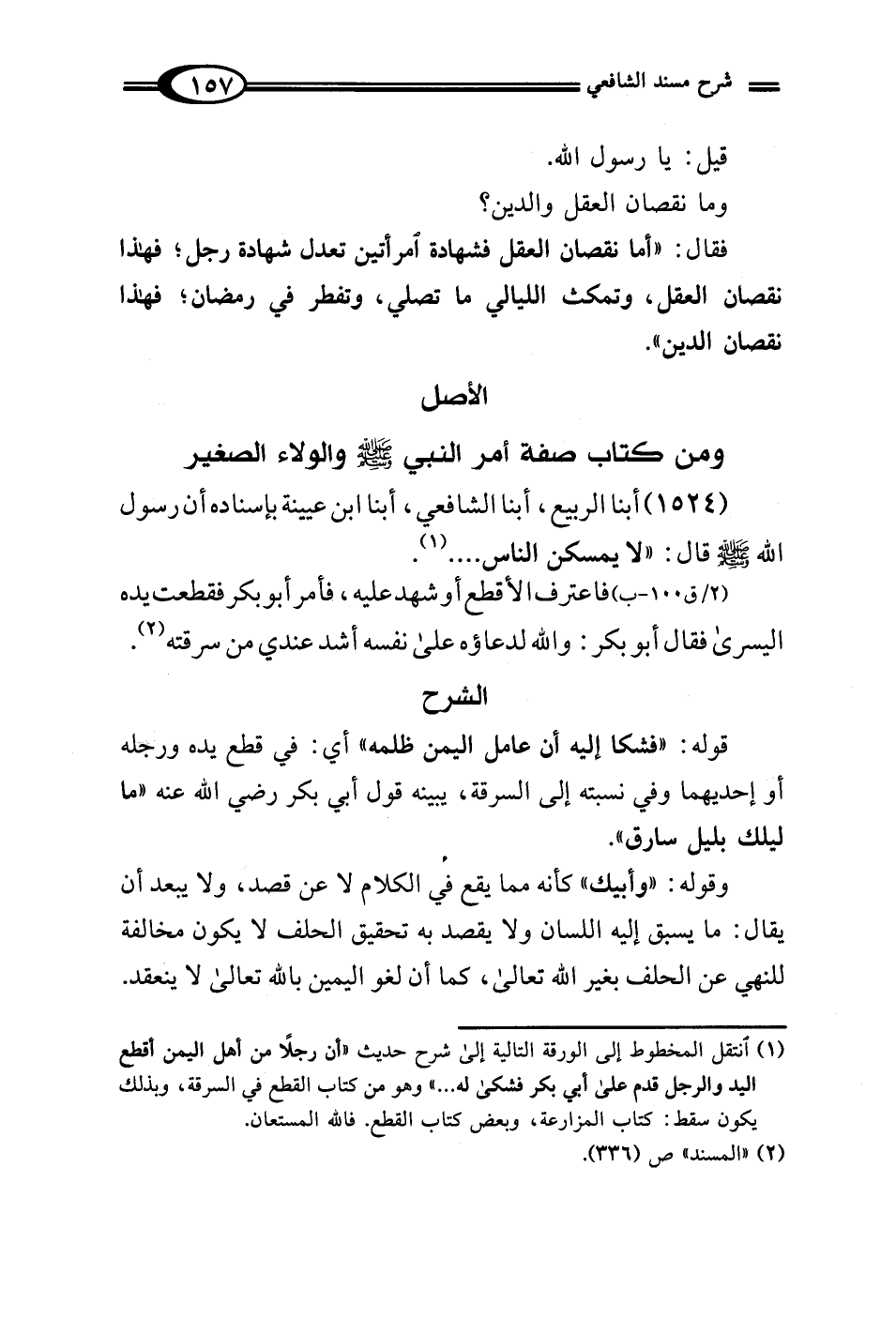 (¬1) انتقل المخطوط إلى الورقة التالية إلى شرح حديث "أن رجلًا من أهل اليمن أقطع اليد والرجل قدم على أبي بكر فشكى له ... " وهو من كتاب القطع في السرقة، وبذلك يكون سقط: كتاب المزارعة، وبعض كتاب القطع. فالله المستعان.