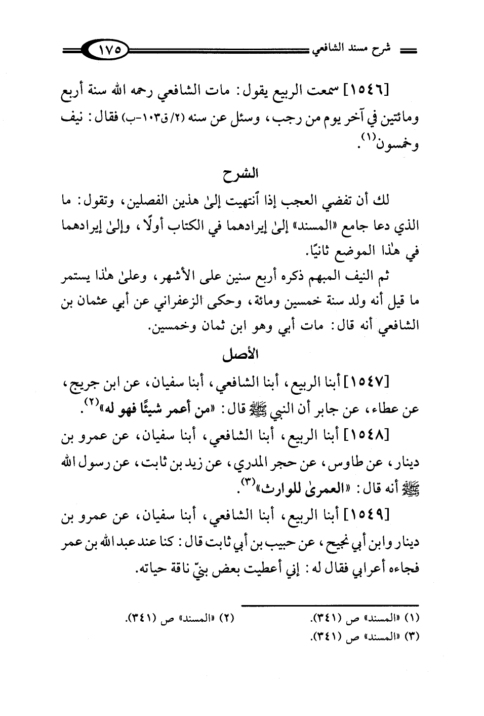 [1549] أبنا الربيع، أبنا الشافعي، أبنا سفيان، عن عمرو بن دينار وابن أبي نجيح، عن حبيب بن أبي ثابت قال: كنا عند عبد الله بن عمر فجاءه أعرابي فقال له: إني أعطيت بعض بنيّ ناقة حياته.