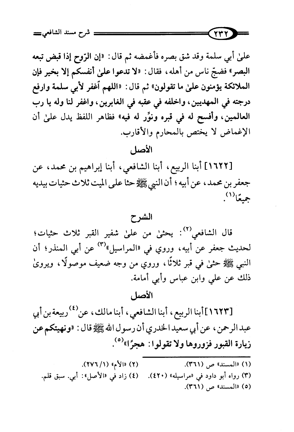 [1622] أبنا الربيع، أبنا الشافعي، أبنا إبراهيم بن محمَّد، عن جعفر بن محمَّد، عن أبيه؛ أن النبي - صلى الله عليه وسلم - حثا على الميت ثلاث حثيات بيديه جميعًا (¬1).